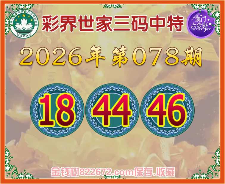 078期:《彩界世家》 😜三码中特😜【18.44.46】开:46准上榜高手