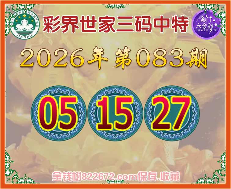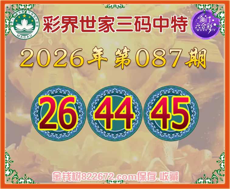 087期:《彩界世家》 😜三码中特😜【26.44.45】开:26准上榜高手