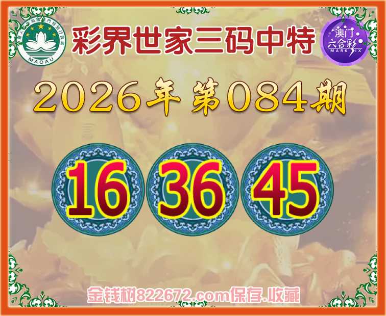 084期:《彩界世家》 😜三码中特😜【16.36.45】开:16准上榜高手