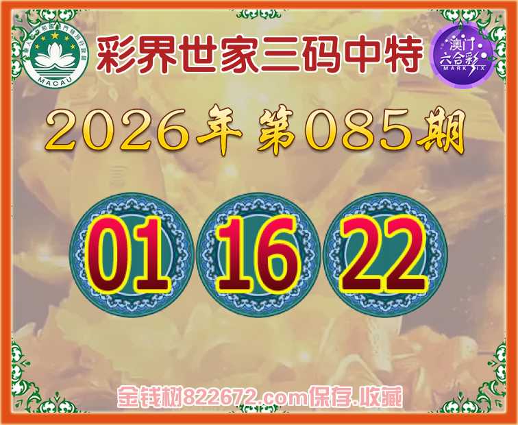 085期:《彩界世家》 😜三码中特😜【01.16.22】开:19