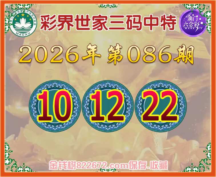 086期:《彩界世家》 😜三码中特😜【10.12.22】开:12准上榜高手