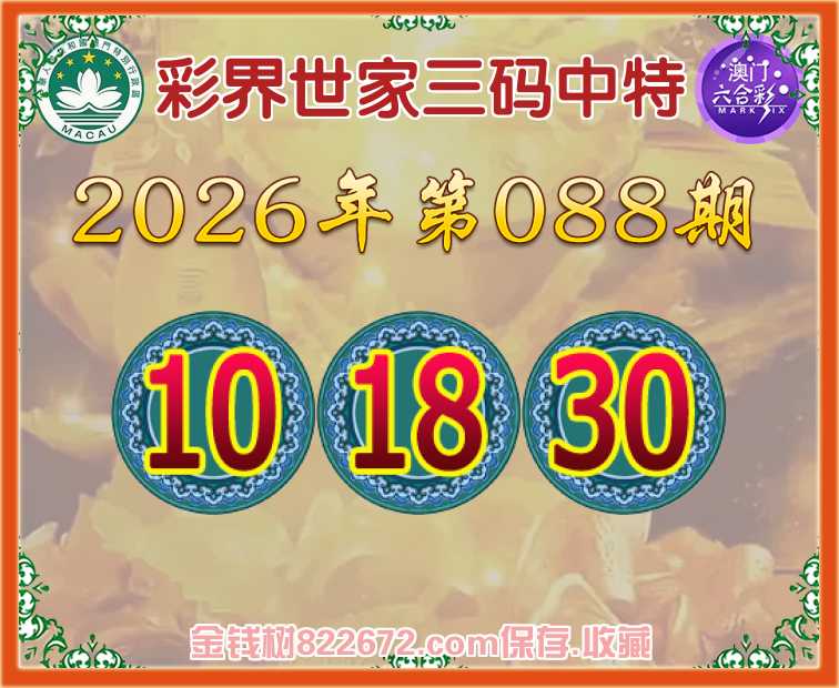 088期:《彩界世家》 😜三码中特😜【10.18.30】开:27