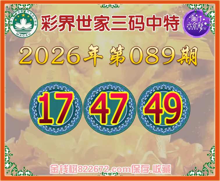 089期:《彩界世家》 😜三码中特😜【17.47.49】开:49准上榜高手