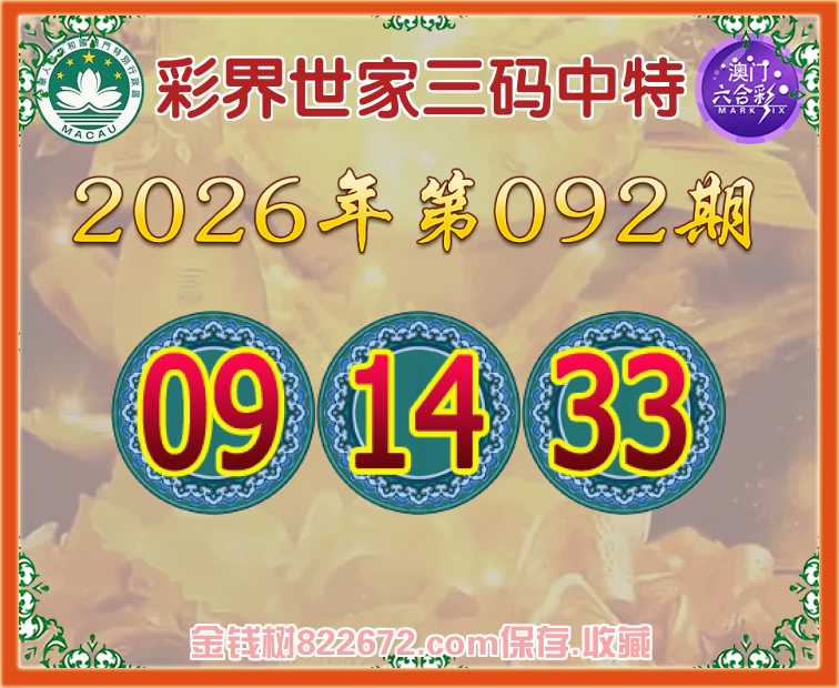092期:《彩界世家》 😜三码中特😜【09.14.33】开:06