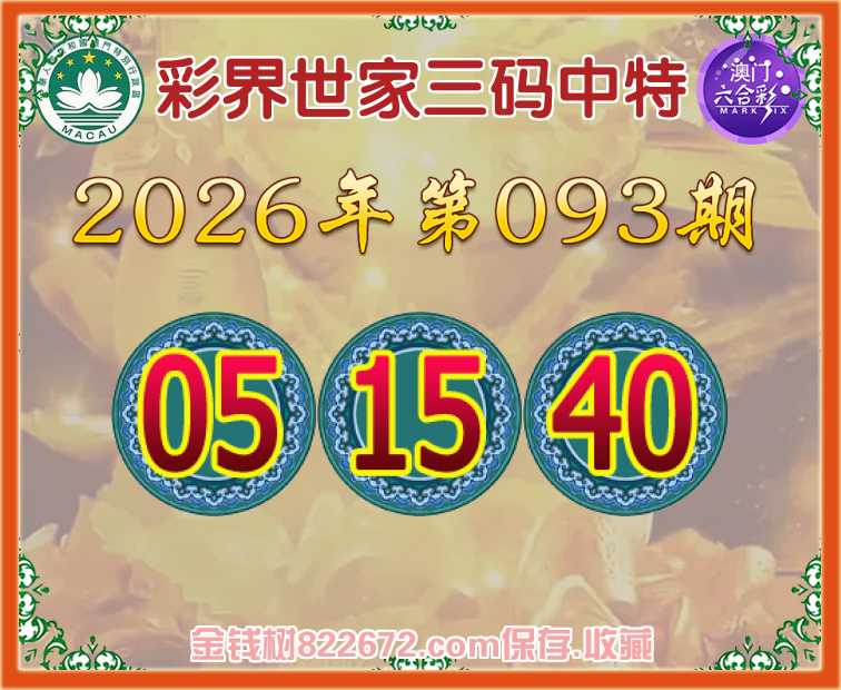 093期:《彩界世家》 😜三码中特😜【05.15.40】开:40准上榜高手