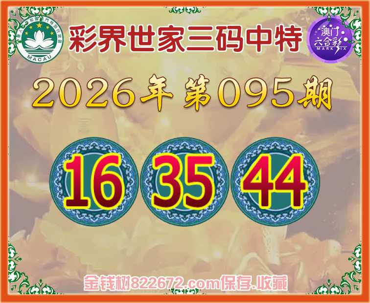 095期:《彩界世家》 😜三码中特😜【16.35.44】开:35准上榜高手