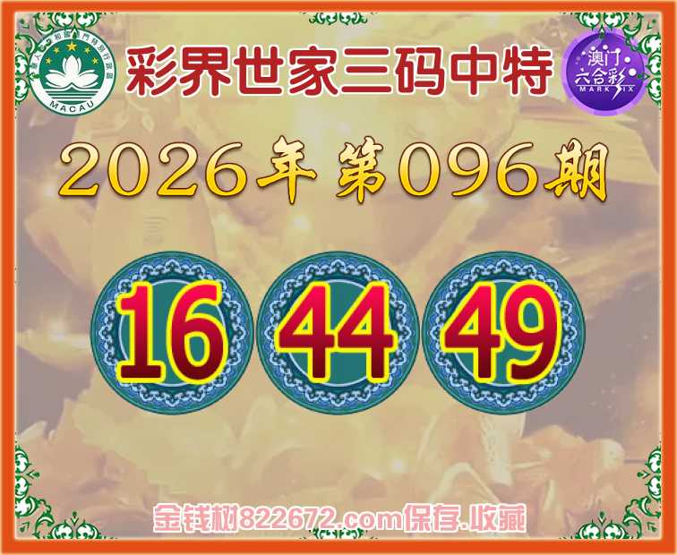 096期:《彩界世家》 😜三码中特😜【16.44.49】开:43