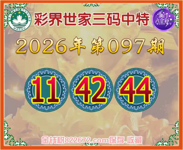 097期:《彩界世家》 😜三码中特😜【11.42.44】开:11准上榜高手