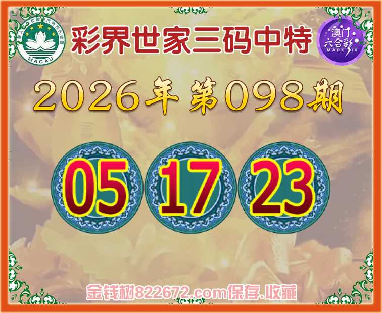098期:《彩界世家》 😜三码中特😜【05.17.23】开:17准上榜高手