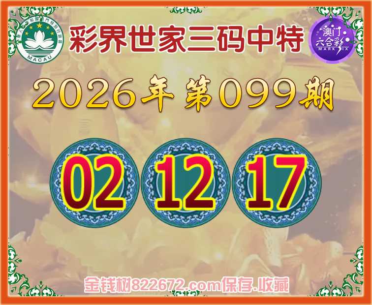 099期:《彩界世家》 😜三码中特😜【02.12.17】开:12准上榜高手