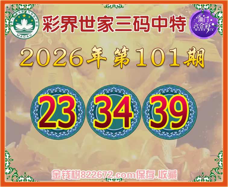 101期:《彩界世家》 😜三码中特😜【23.34.39】开:39准上榜高手
