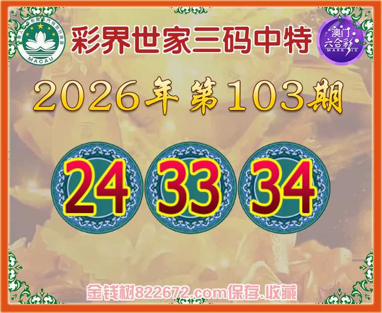 103期:《彩界世家》 😜三码中特😜【24.33.34】开:06